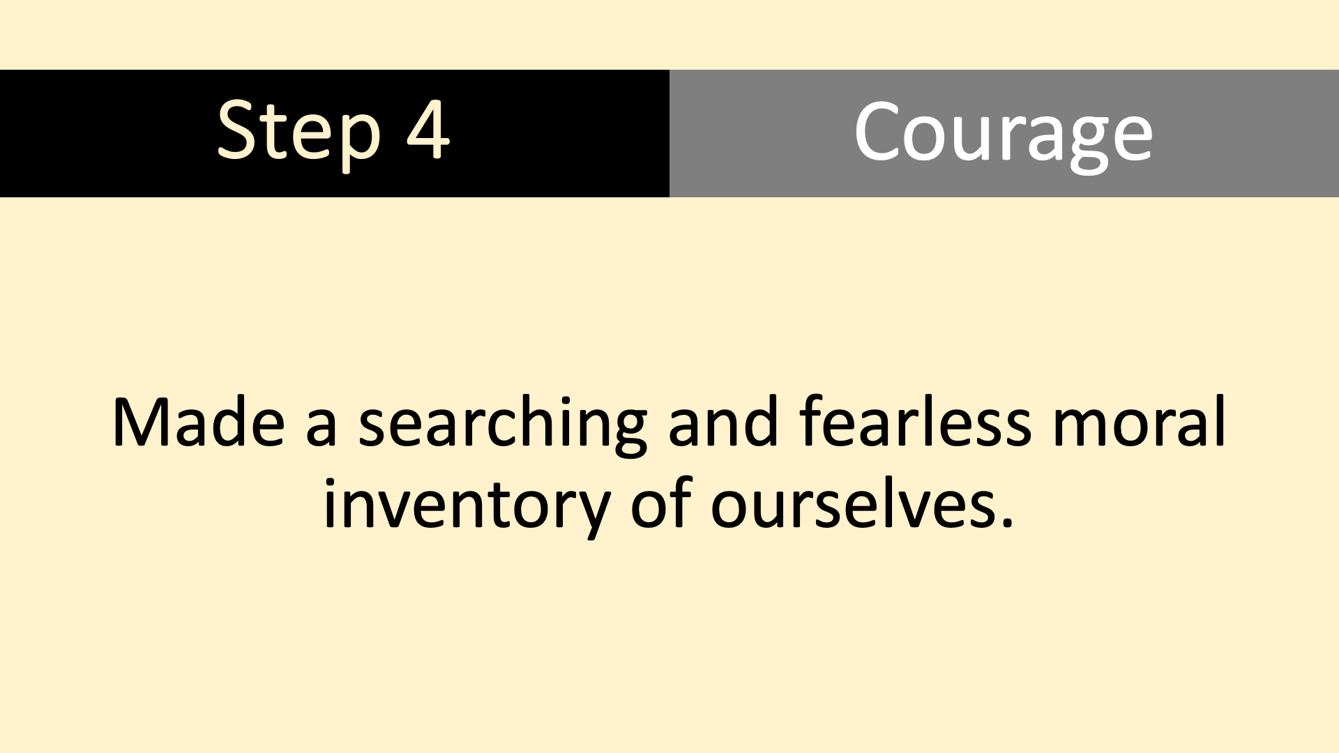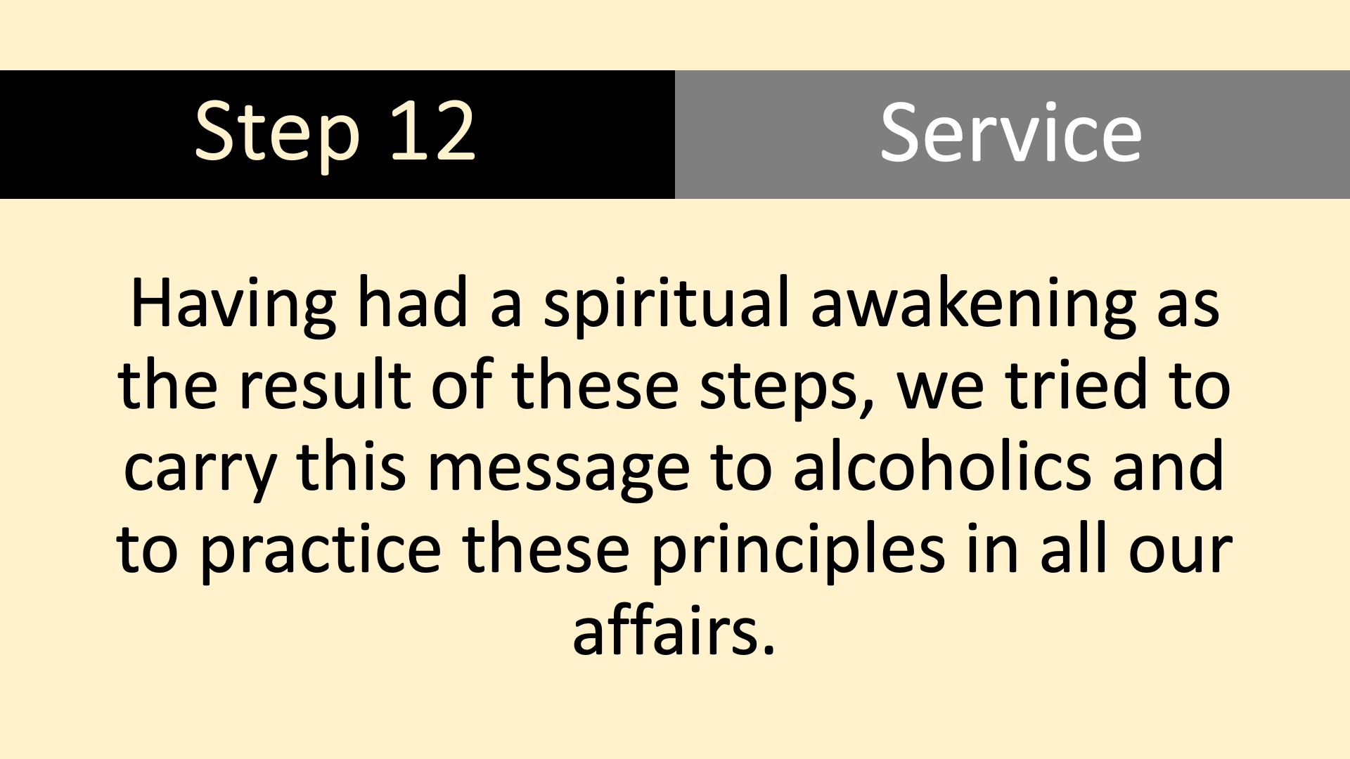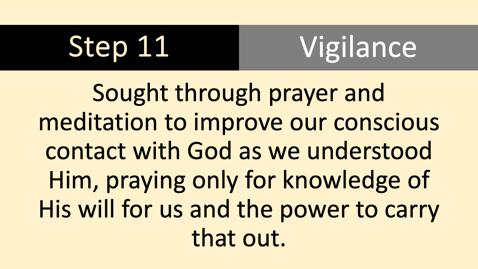Our Step Meeting rotates through the Twelve Steps on a 13 week cycle, the 13th week being devoted to a Group Conscience Meeting.