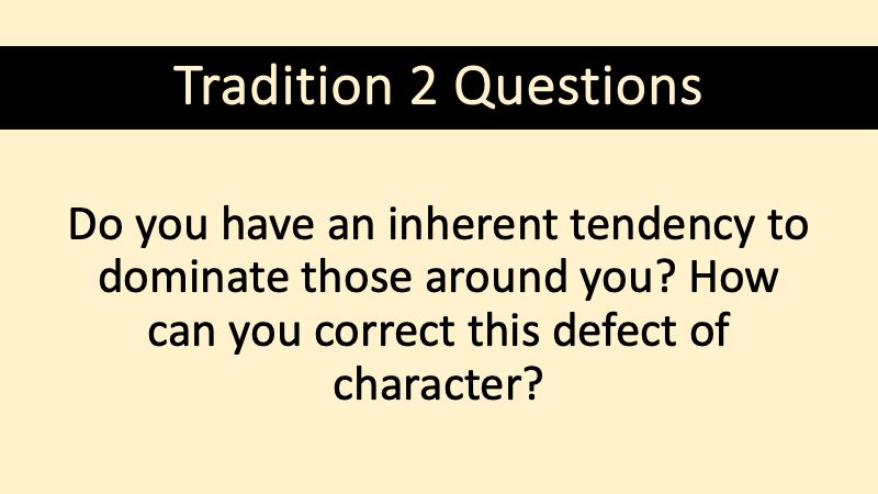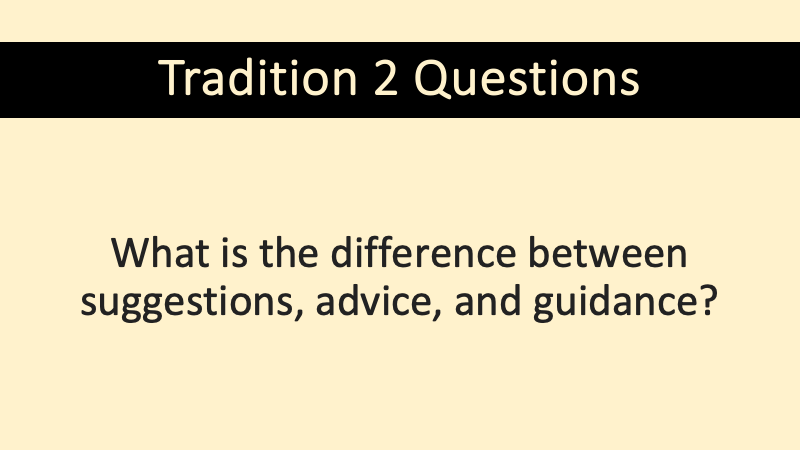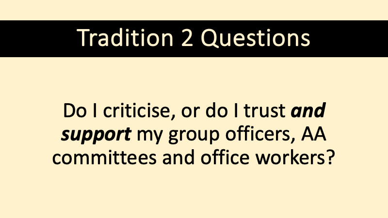 “For our group purpose there is but one ultimate authority – a loving God as He may express Himself in our group conscience. Our leaders are but trusted servants; they do not govern.”