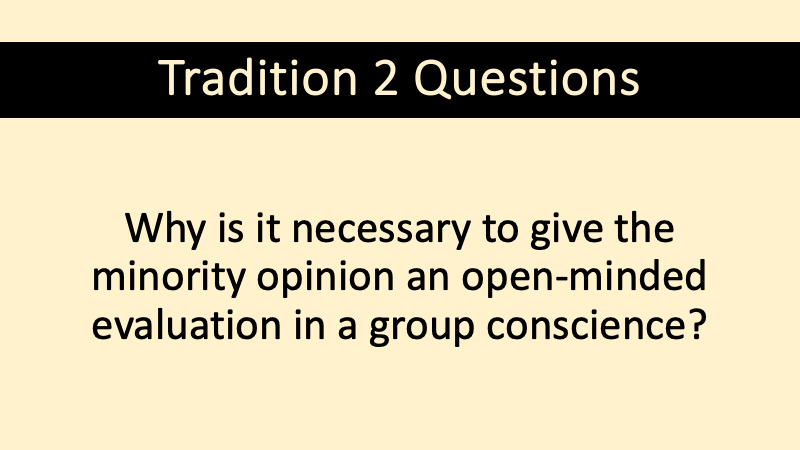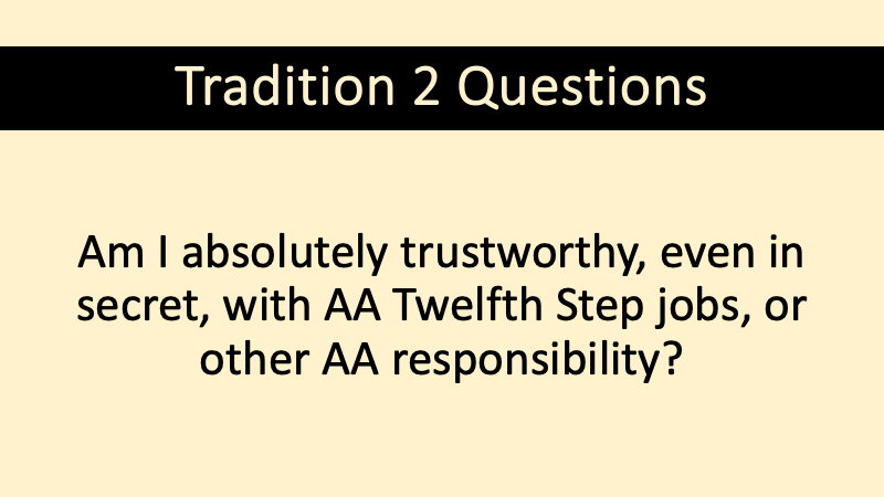 - Sole authority in A.A. is loving God as He may express Himself in the group conscience.