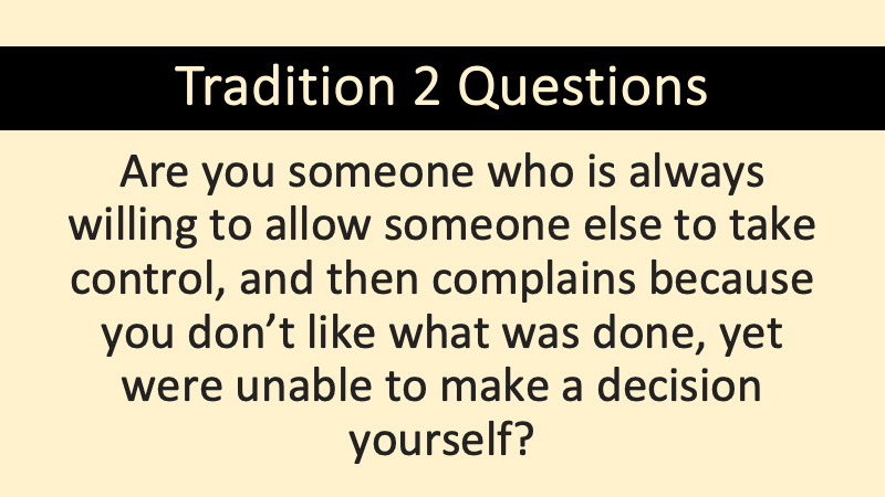 “For our group purpose there is but one ultimate authority – a loving God as He may express Himself in our group conscience.”